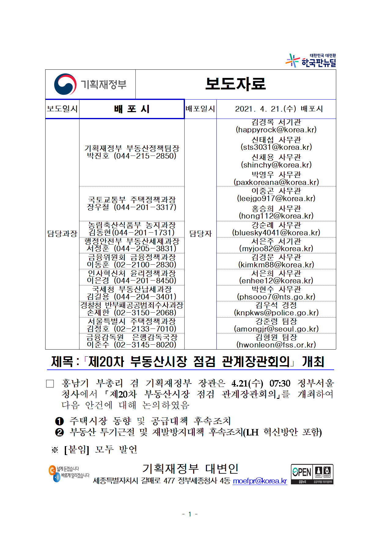 | [보도자료] 지방 주요 과열지역 실거래 기획조사로 다운계약·탈세 등 244건 확인 (0) | 2021.04.19 |