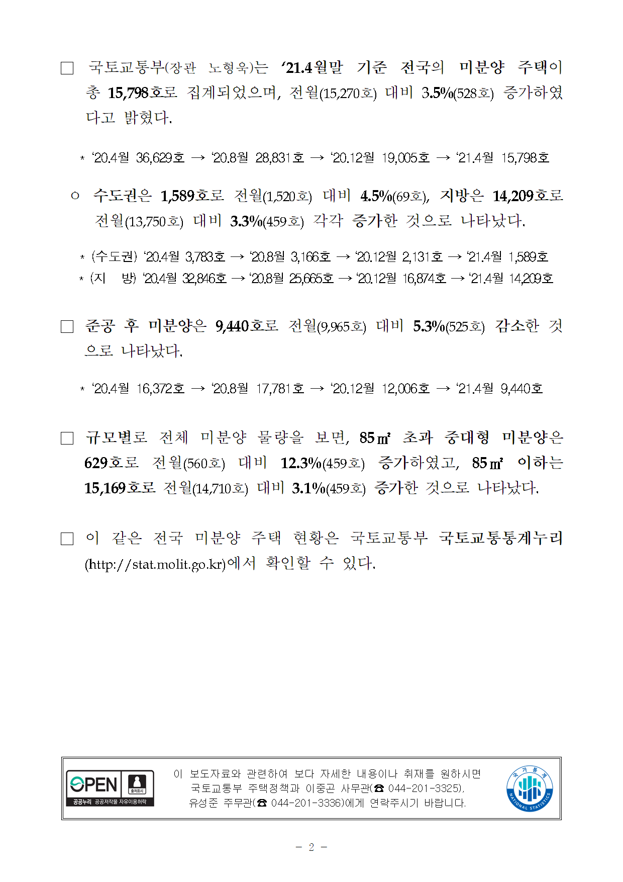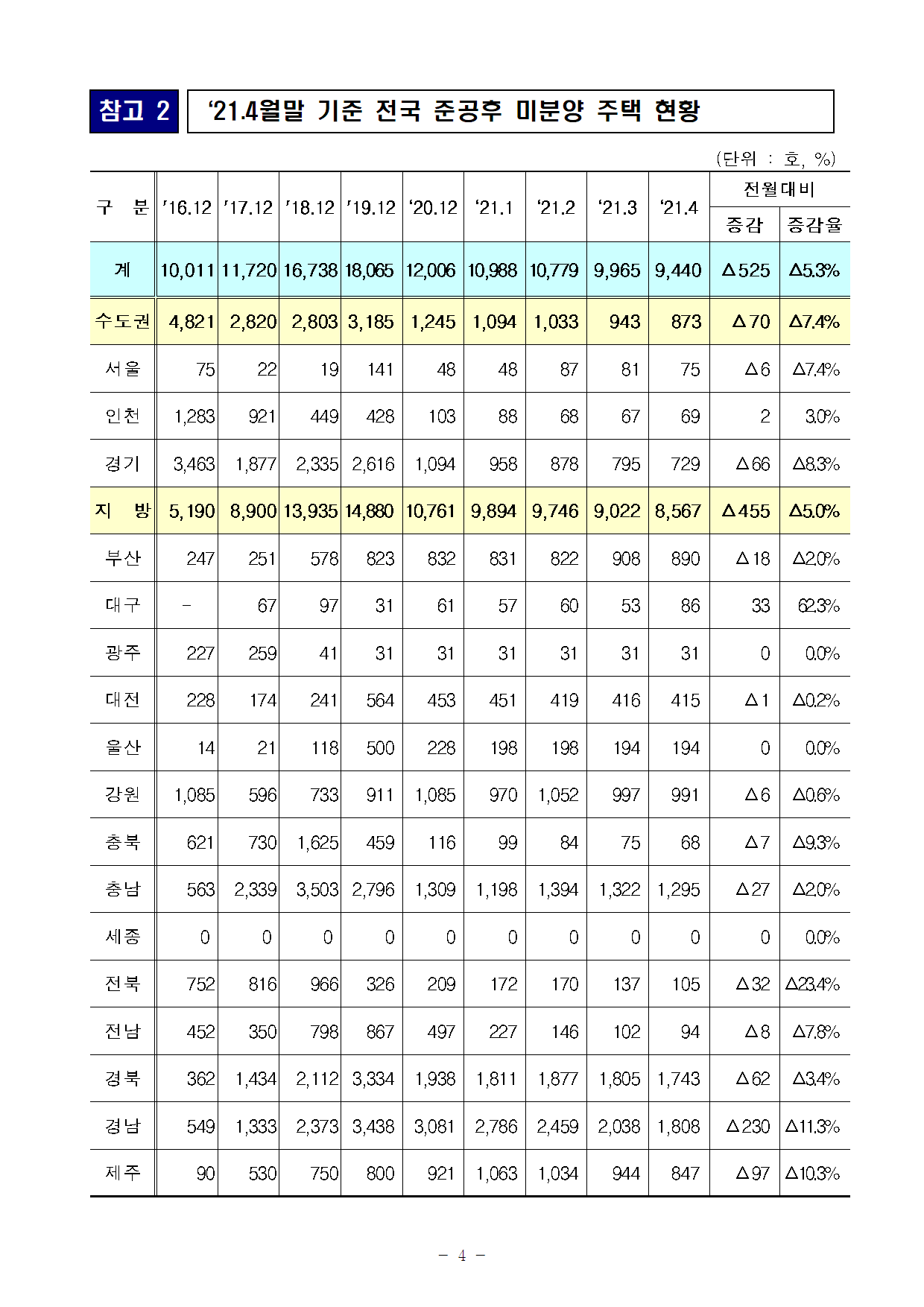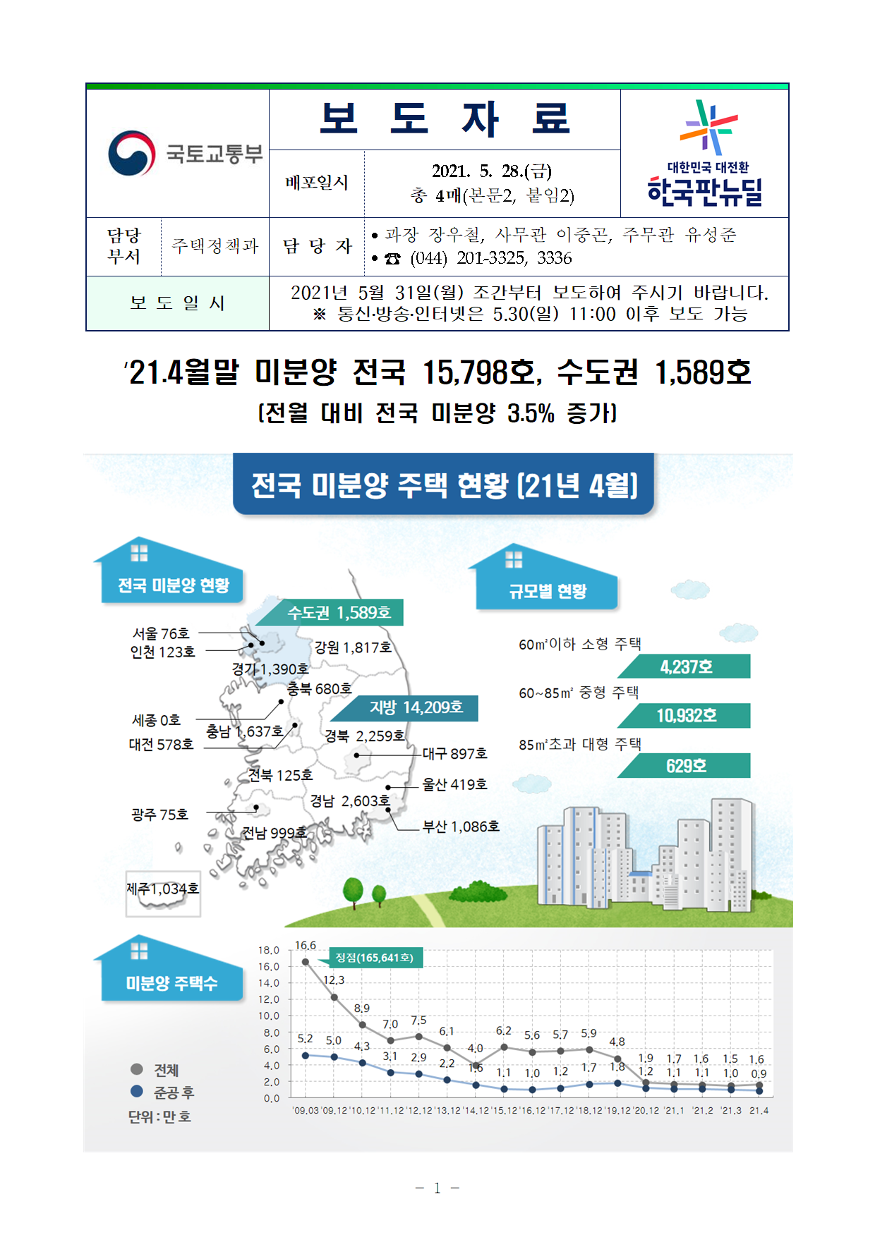 | [보도자료] ’21년 4월 주택 인·허가 4.5만 호, 착공 4.5만 호, 분양 2.7만 호, 준공 2.5만 호 (0) | 2021.05.31 |