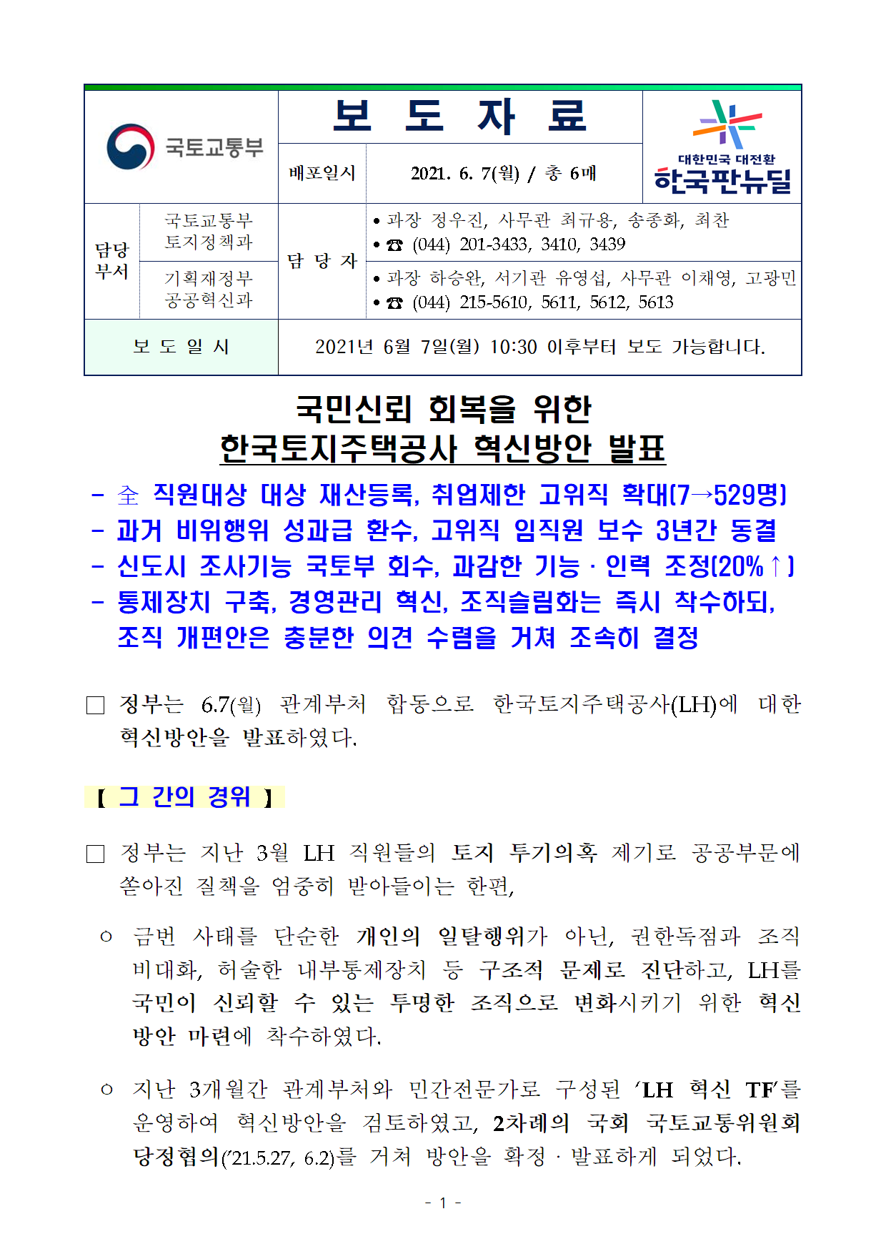 210607(10시30분이후)국민신뢰 회복을 위한 한국토지주택공사 혁신방안 발표(보도자료).pdf