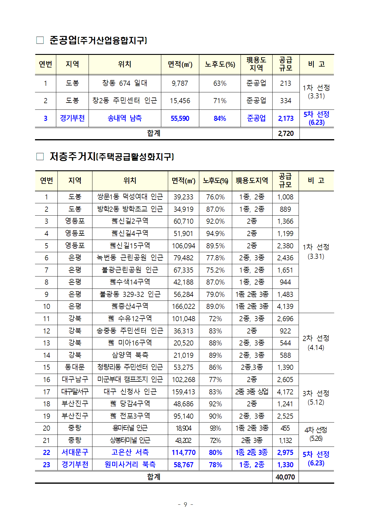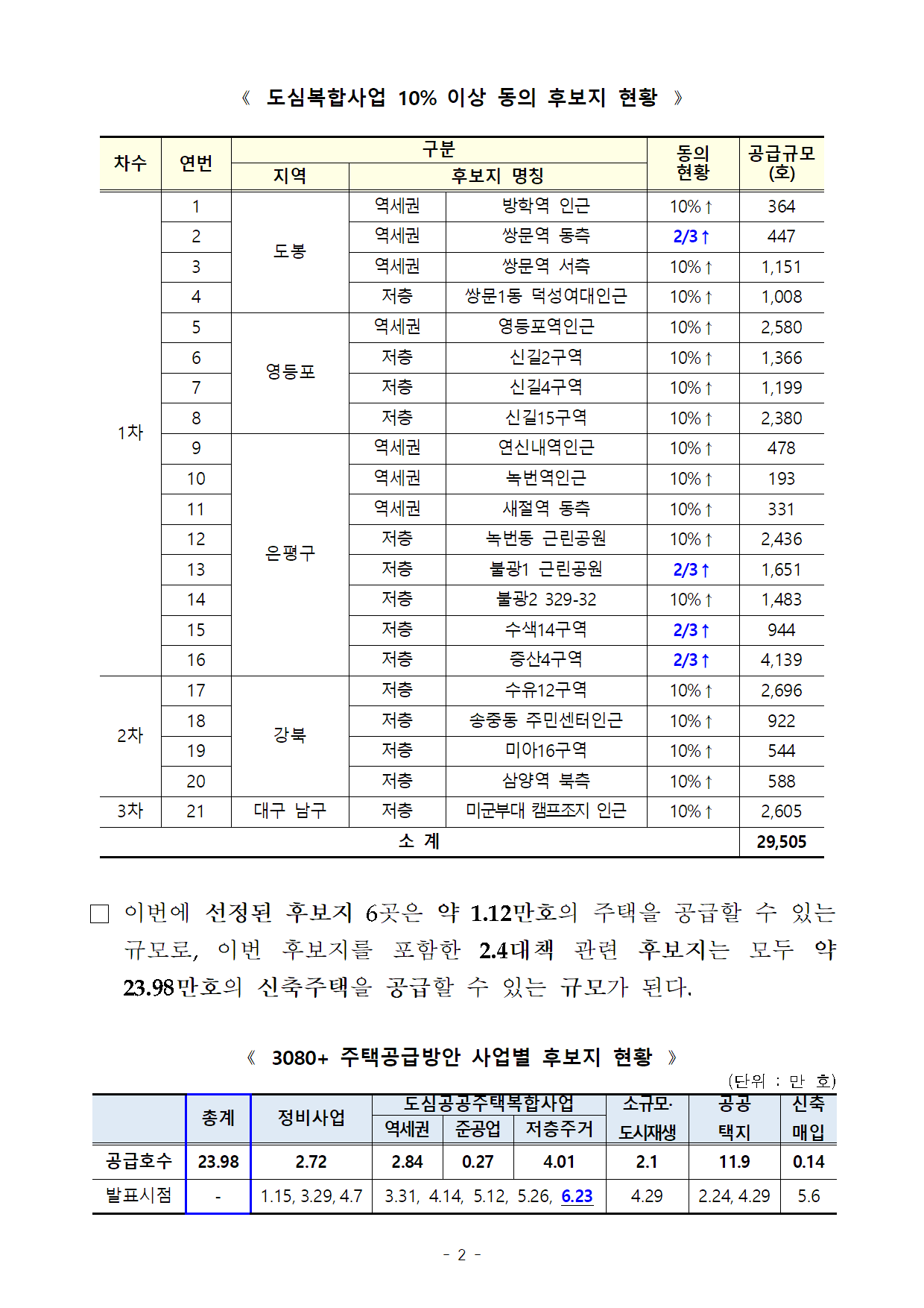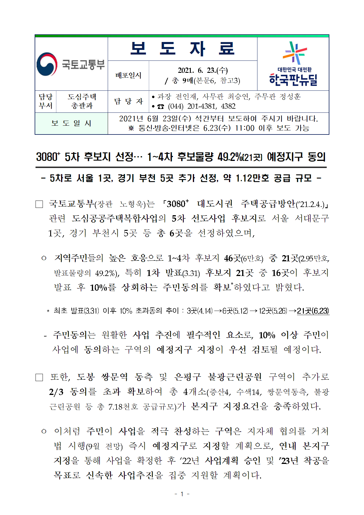 210623(11시이후)3080_5차 후보지 선정_1_4차 후보물량 49.2퍼센트(21곳) 예정지구 동의(도심주택총괄과).pdf