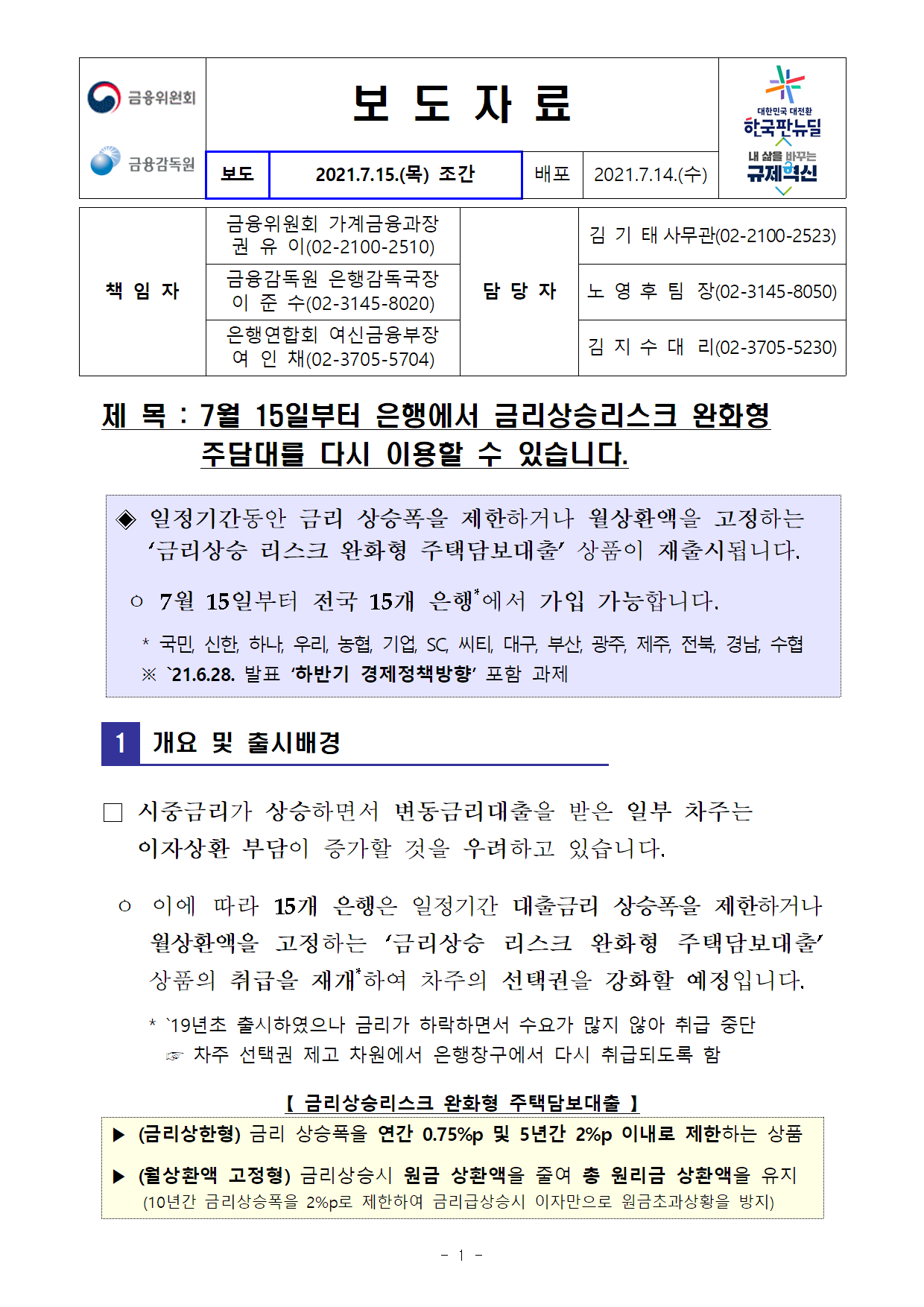| [보도자료] 서민·실수요자의 내 집 마련 지원을 강화하고무주택 청년 등의 금융부담을 줄이겠습니다. (0) | 2021.06.21 |